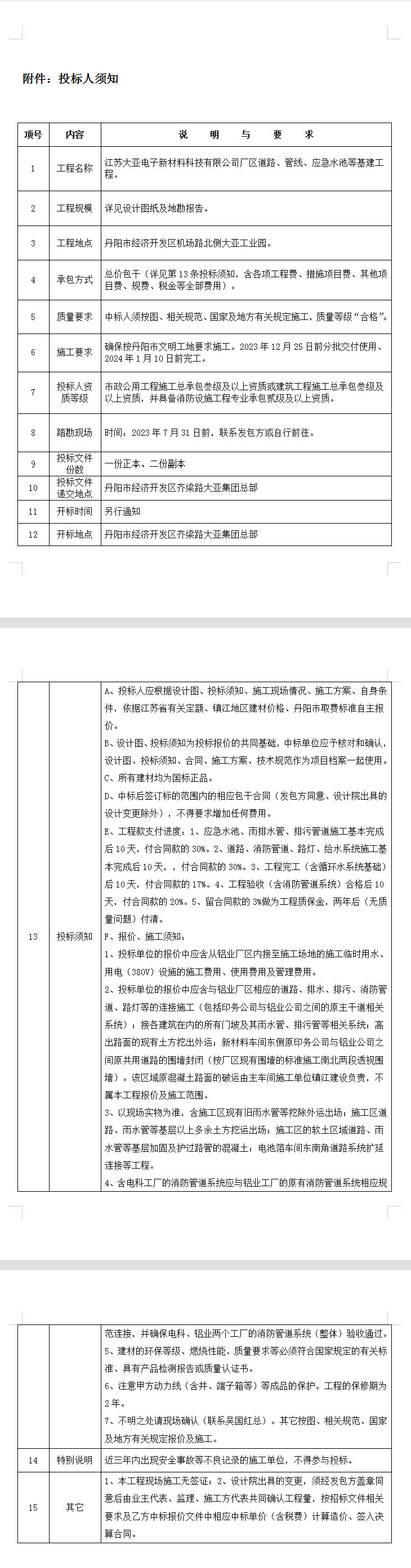 1、工程地点: 江苏省丹阳市经济开发区机场路北侧大亚工业园