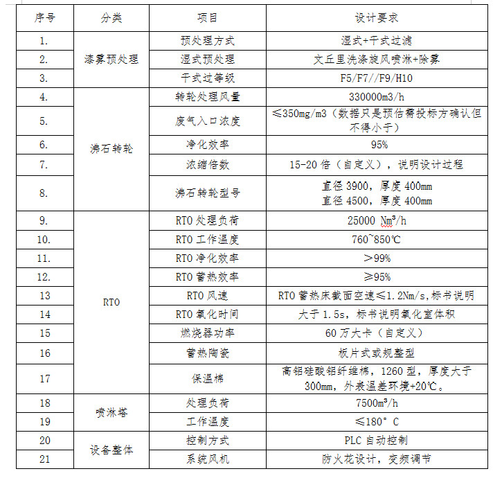 1、废气-2套湿式预处理系统+2套干式过滤系统+2套沸石转轮+1套RTO系统+1套回风系统。