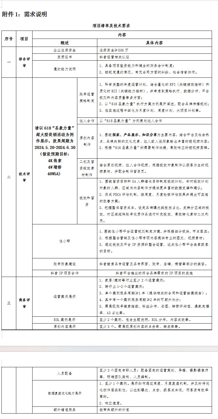 具体要求详见附件1 |