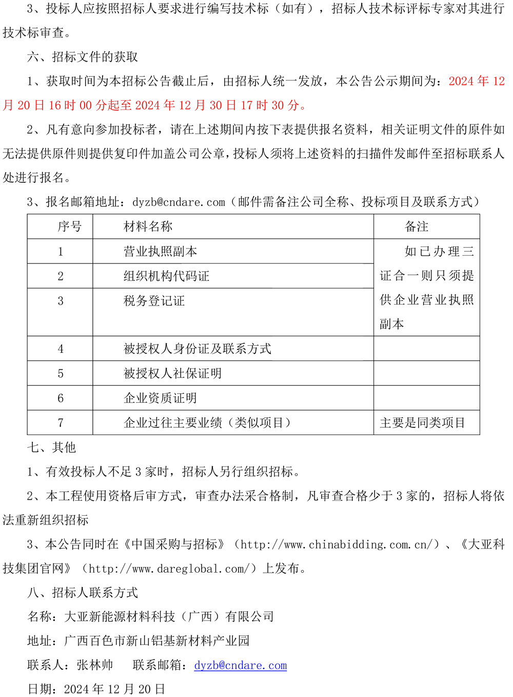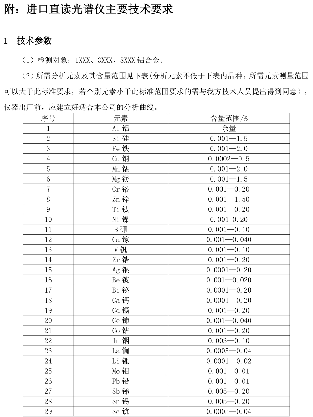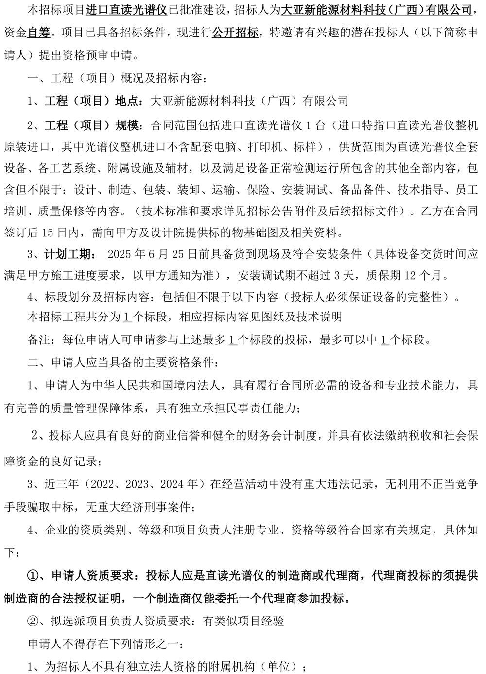 大亚新能源材料科技(广西)有限公司进口直读光谱仪招标公告