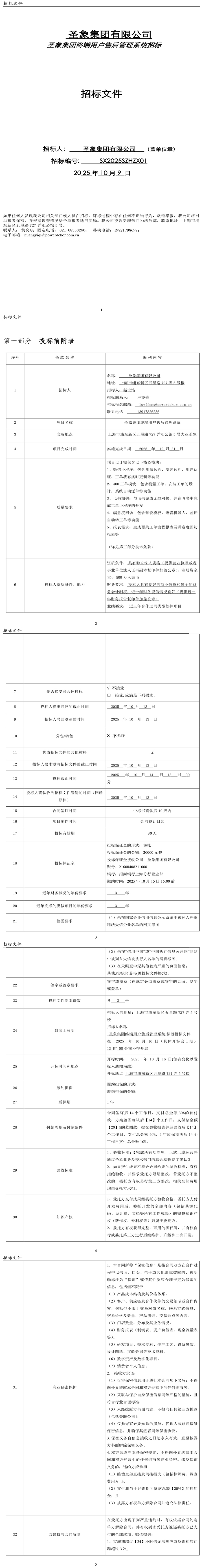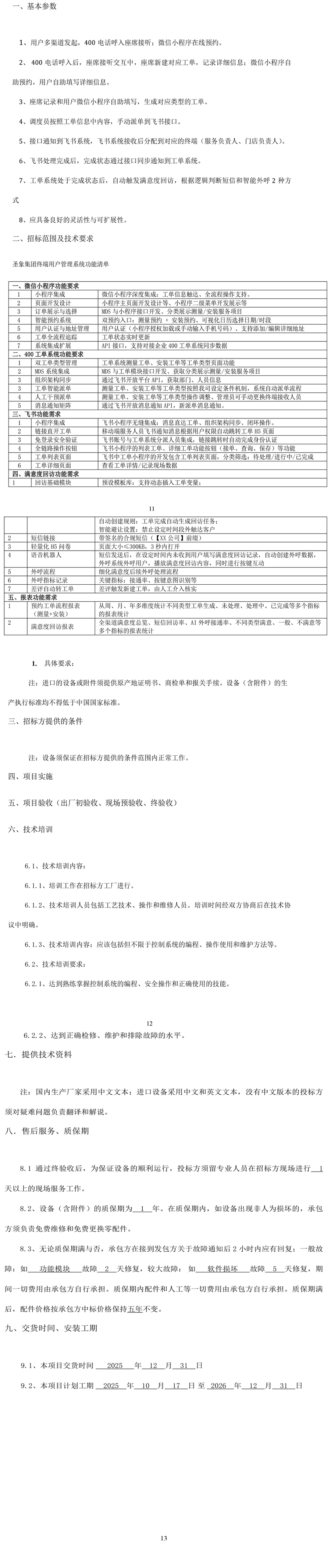 圣象集团终端用户售后管理系统招标