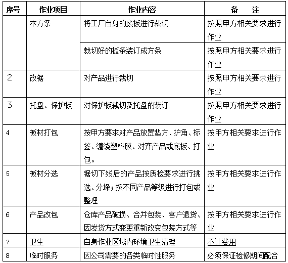 1、招标方提供所需的木质原材料(刨花板、纤维板等)。