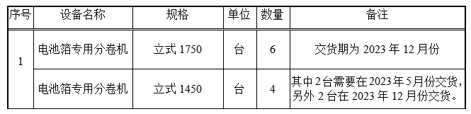 电池箔分卷机采购项目