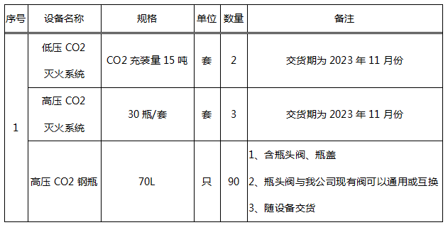 附:低压CO2灭火装置基本参数