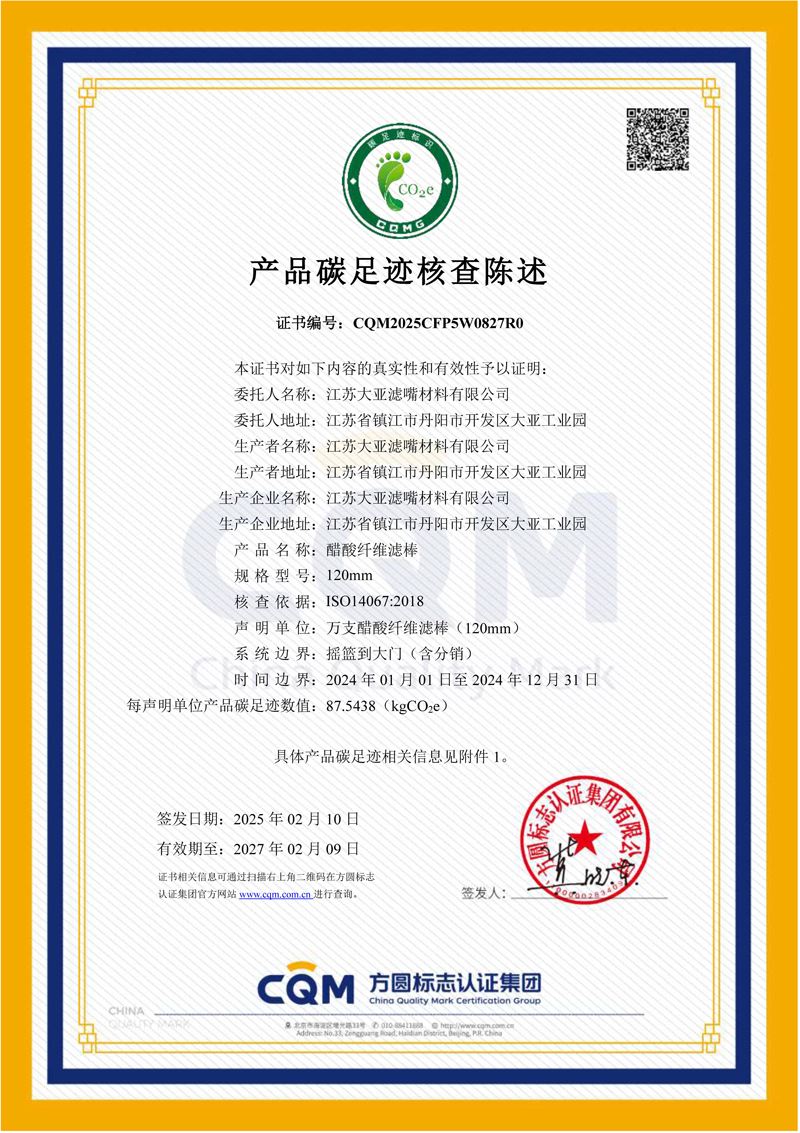江苏大亚滤嘴材料有限公司2024年度碳足迹第三方核查报告 公示
