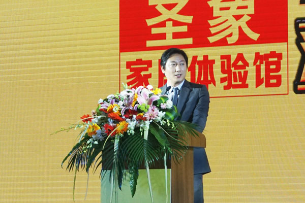 大亚集团董事长陈晓龙致辞,他表示大亚圣象家居体验馆的落成,正是践行大家居战略的体现,是大亚圣象发展史上具有里程碑意义的事件。未来,大亚圣象将坚定地以优势产业来推动圣象家居全产业链和家居供应链的协调发展,发扬“工匠精神”,持续为市场提供高质量的产品。