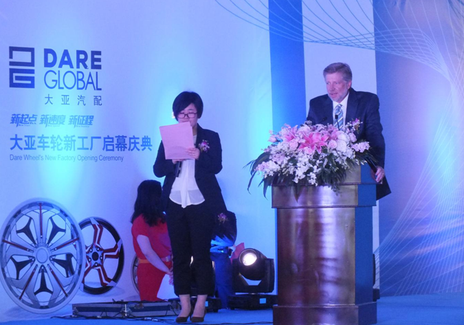 大亚车轮制造有限公司总经理何芳致欢迎词