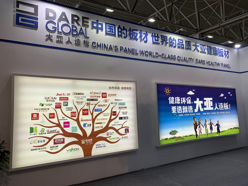 大亚人造板现场展出了无醛刨花板、无醛地板基材、无醛镂铣板、无醛家具纤维板、高防潮刨花板、防潮地板基材、防潮门板、防霉纤维板、防霉刨花板、低吸涨纤维板、低吸涨刨花板、阻燃纤维板、电子线路垫板、鞋跟板等代表人造板行业先进技术水平的产品,吸引了众多客户前来观摩洽谈。