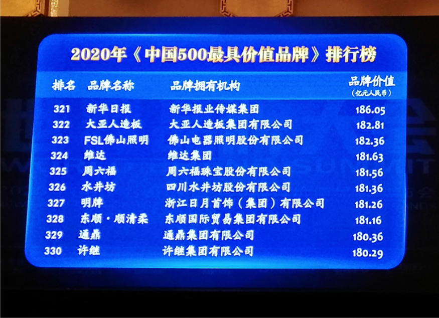【重磅】2020年中国500最具价值品牌发布 圣象品牌价值572.59亿 大亚人造板品牌价值182.81亿