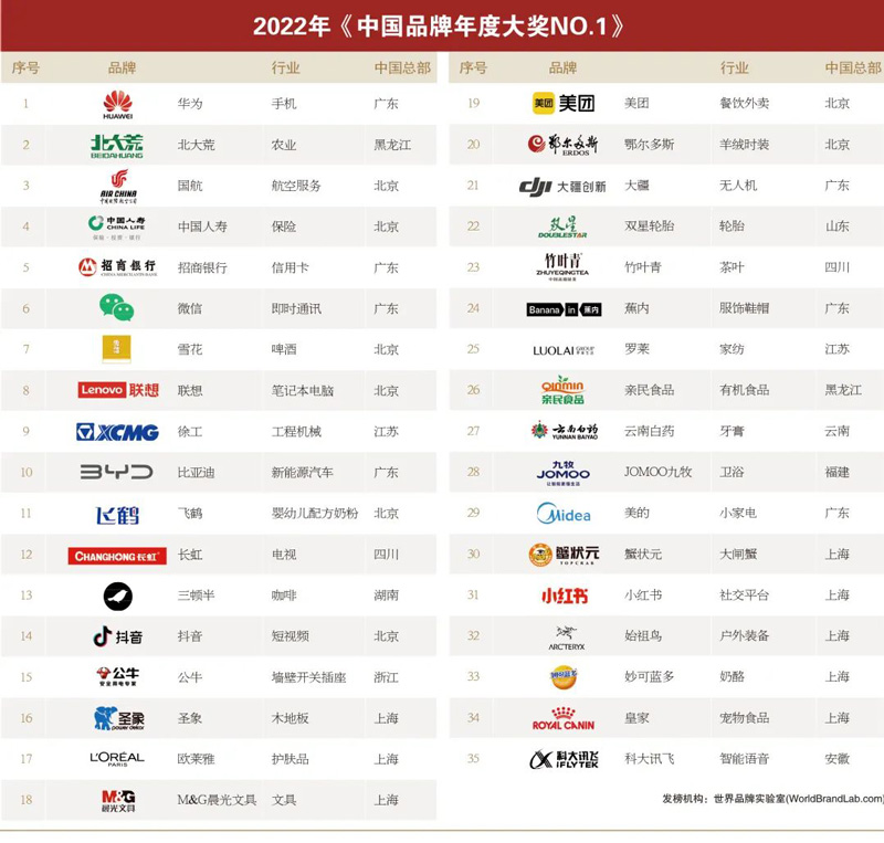 如今,中国消费者对本土品牌的信心正不断增强。由世界品牌实验室编制的2022年《世界品牌500强》中,中国今年有45个品牌入选,再次超越英国,位列第四,在创造世界级品牌的道路上又迈进了一步。